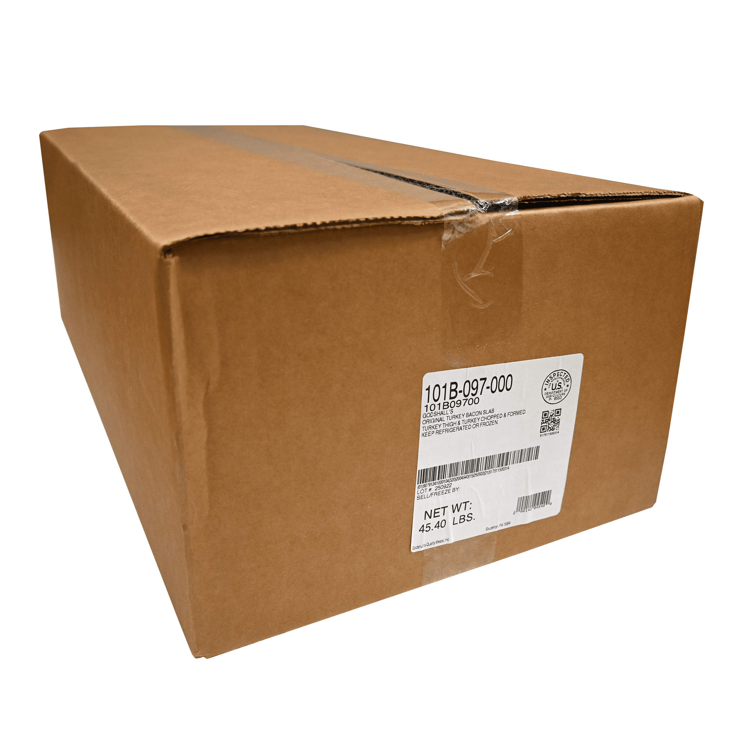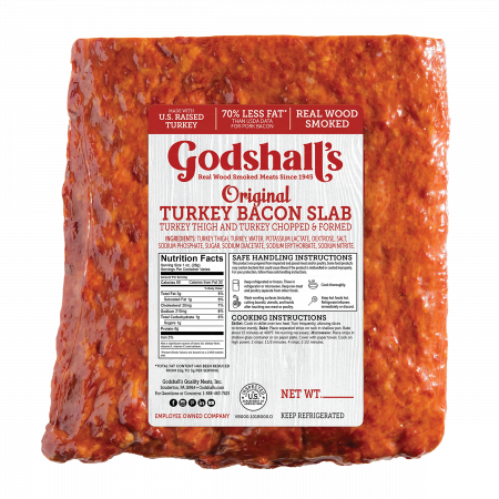 Made from premium whole cuts of U.S.-raised turkey and slowly smoked over real hardwood for deep, savory flavor. Our turkey bacon slab offers food service professionals a versatile, lean protein option perfect for breakfast menus, sandwiches, and catering. Gluten-free and without artificial flavors, it provides consistent quality and rich taste to elevate any dish.